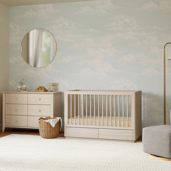 The Bento 3-in-1 Convertible Storage Crib celebrates modern minimalism with softly curved edges, hidden drawer pulls, and raised platform base. It's the thoughtful details that set this crib apart with two under-crib storage drawers and included toddler bed conversion kit. Made with sustainable New Zealand pine wood and screened for harmful chemical emissions to ensure it meets GREENGUARD GOLD Certification.