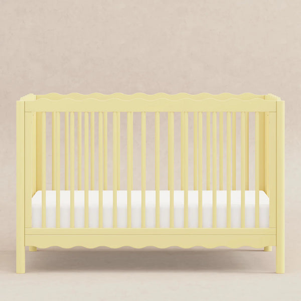 Dive into a world of playful charm with the Swell 4-in-1 Convertible Crib! Designed with wavy top and bottom railings inspired by the gentle undulations of ocean waves, this crib invokes the serene beauty of the sea and comes in a variety of colors to compliment any nursery. The Swell is made with sustainable New Zealand pine wood and screened for harmful chemicals to ensure it meets GREENGUARD GOLD Certification. An included toddler bed conversion kit allows you to seamlessly convert from crib to toddler bed to daybed with the option to add a full-sized bed conversion as you enter the big kid years.
