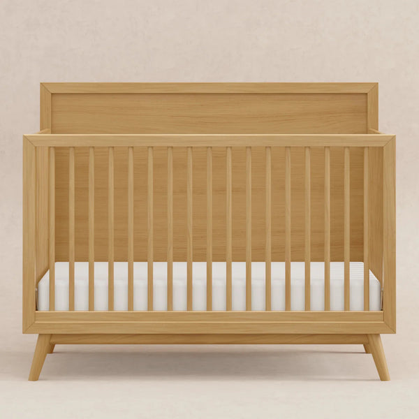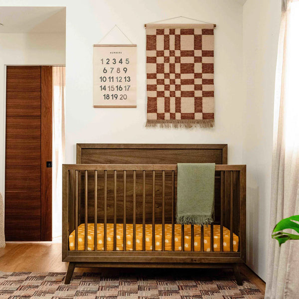 The Palma 4-in-1 Convertible Crib is the ultimate centerpiece to a stylish mid-century nursery. The Palma grows with your babe with an included toddler bed conversion kit allowing you to seamlessly convert from crib to toddler bed to daybed. And with a high headboard, it can transition into a timeless piece with an additional full-size bed conversion. Made with sustainable materials and GREENGUARD Gold certified for indoor air quality.