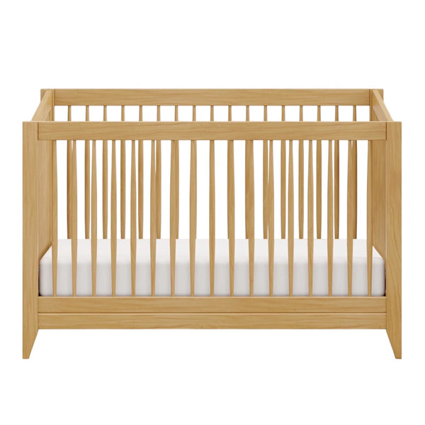 Add new dimension and geometric playfulness to your modern nursery with the Sprout 4-in-1 Convertible Crib. Tapered spindles and triangular feet bring nostalgic charm to this crib’s modern shape. And with a subtle raised back, Sprout can grow with your babe with a smart full-size bed conversion. Made with sustainable pine wood and GREENGUARD Gold certified to improve indoor air quality.