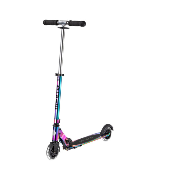Go anywhere on the Micro Sprite! Our lightest 2-wheeled Micro scooter for ages 6 to teen, the Sprite weighs just 5.9 lbs and folds for easy portability. It’s our highest rated 2-wheel Micro scooter for a reason! This upgraded Sprite features motion-activated light-up LED wheels on the front and back.