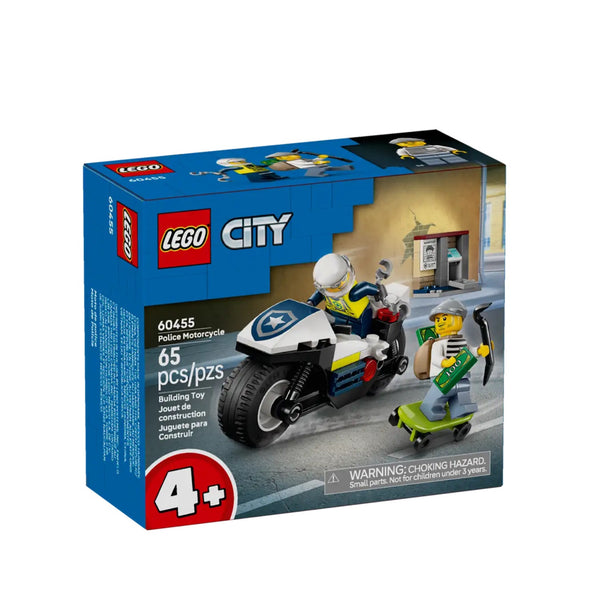 Surprise your young action hero with this exciting LEGO® City Police Motorcycle Chase (60455) playset. Perfect for little builders aged 4 and up, it features a cool police motorbike with wide tires, a crook’s getaway skateboard and an opening mini-ATM with a toy banknote. Just add the police officer and crook minifigures for hours of imaginative play and storytelling.