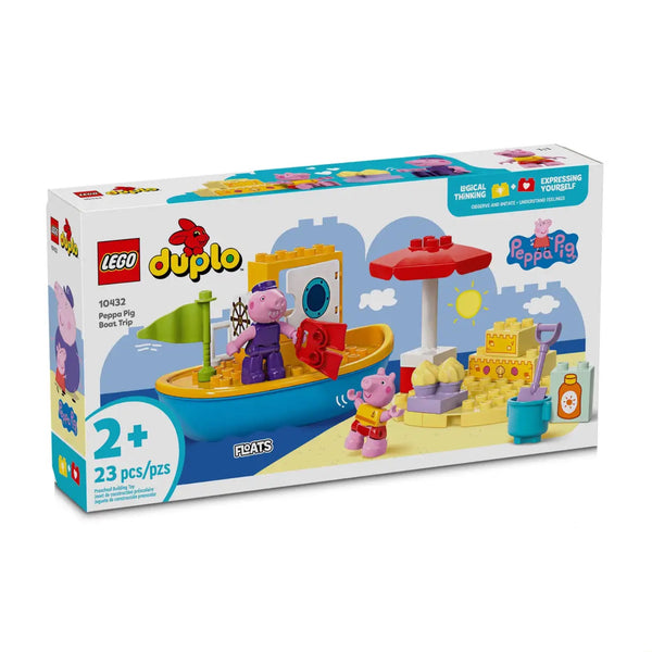 All aboard the LEGO® DUPLO® Peppa Pig Boat Trip Toy (10432) for hours of joyful preschool learning. Girls and boys aged 2+ join the Grandpa Pig and Peppa Pig figures as they head to the beach with his boat.